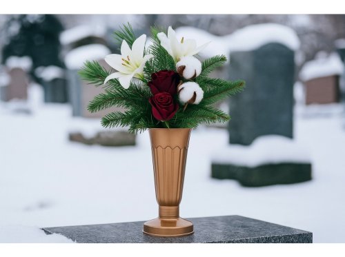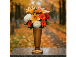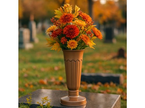 Plastová hřbitovní váza Madona se zátěží o výšce 32 cm je ideálním řešením pro bezpečné a stabilní umístění květin na hrobě. Díky pevné zátěži váza odolává větru a zajišťuje, že květiny zůstanou ve svislé poloze po dlouhou dobu. Jednobarevný design je praktický a nenáročný na údržbu.