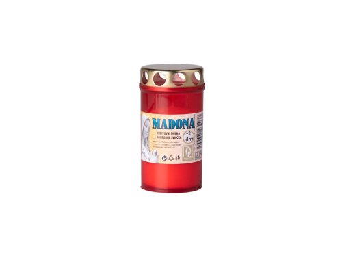 Svíčka Madona s víčkem v červené barvě, hoří až 2 dny.