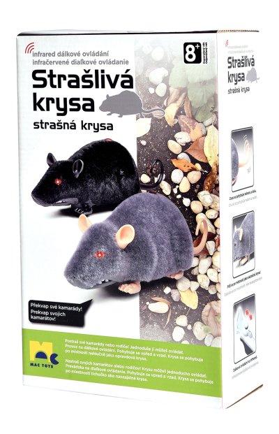 Krysa na dálkové ovládání. Chodí všemi směry. Dvě barevná provedení. Chodí tiše, jako živá myška.