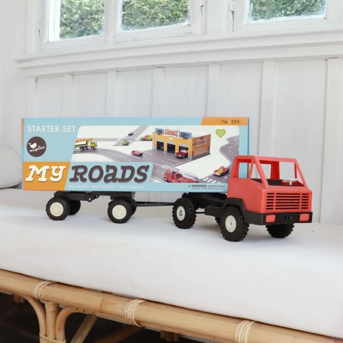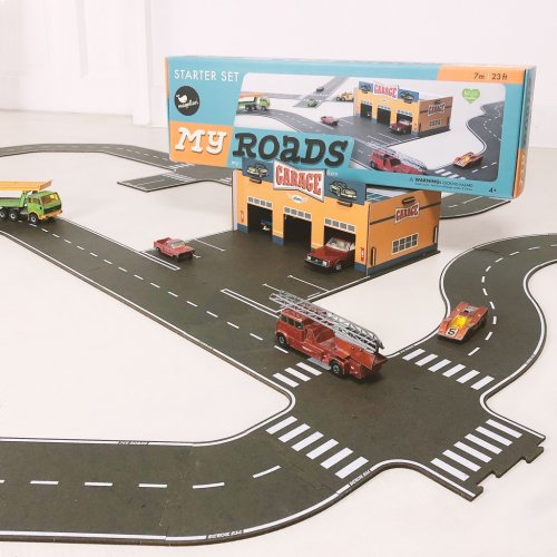 44dílná sada obsahuje silniční úseky, zatáčky, křižovatky a velkou garáž v nadčasovém retro designu. Části silnice lze libovolně kombinovat i s dalšími sadami MyRoads. Snadno se spojují a jsou vyrobeny z udržitelného, odolného materiálu z recyklovaného dřeva. Díky rozmanitosti tras a nekonečným možnostem jejich skládání, děti mohou popustit uzdu své kreativitě a připravit se tak na hodiny vzrušující zábavy! Poznámka: Jelikož jde o výrobky z přírodního dřeva mohou vykazovat drobné barevné odchylky. Autíčka nejsou součástí balení. Hlavní vlastnosti: obsahuje 6 dlouhých rovinek, 2 rovinky s křižovatkami, 6 krátkých rovinek, 8 velkých zatáček, 6 malých zatáček, 4 koncovky, 4 malé křižovatky, 1 třídílnou základní desku a 1 pětidílnou garážkompatibilní se všemi produkty řady MyRoadspodporuje představivost, obratnost a koordinacivyrobeno z udržitelných a zodpovědně získaných přírodních materiálů