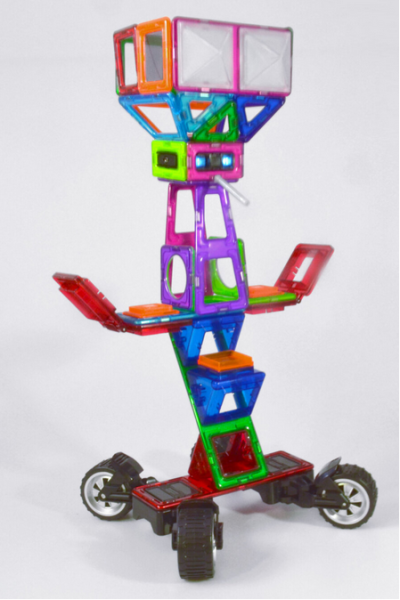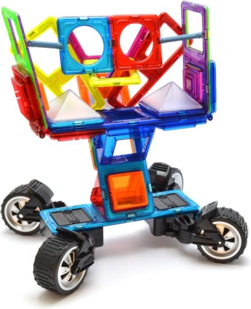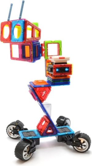 Pro provoz jsou třeba 3 baterie AAA 1,5V (nejsou součástí balení). Kreativní magnetická stavebnice Magformers umožňuje sestavovat velké množství trojrozměrných objektů, pomocí dvourozměrných plastových mnohoúhelníků. Magformers procvičuje jemnou motoriku, podněcuje tvořivost, učí děti barvy a základní geometrické tvary. Rozměry dílků a vhodně volené tvary zajišťují maximální možnou bezpečnost hračky. Materiál, z kterého je stavebnice vyrobena splňuje nejpřísnější hygienická a zdravotní kritéria. Dílky jsou dostatečně velké, nelze je spolknout a jsou prakticky nerozbitné. MAGFORMERS lze velmi dobře kombinovat i se známou magnetickou stavebnicí Geomag.