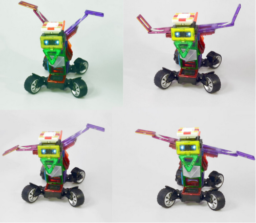 Nový univerzální box s možností stavění neuvěřitelného množství pojízdných robotů, bugyn, náklaďáků či kosmických vozítek. Díky důmyslné kombinaci dlouhých dílků a plastových nástavců jsou výsledné modely překvapivě velké a zároveň stabilní. Třešničkou na dortu jsou pak bonusové dílky (audiomodul, battery pack a tyčky Geomag), které výsledek oživí světelnými a zvukovými efekty. Bugy Robot box je zcela určitě novým hitem v kategorii boxů. Velmi oblíbený bude zejména u chlapců a zaujme i ty starší, kteří už klasickým domečkům a autíčkám odrostli. Se zručností a zralejší invencí výrazně vzrůstá kreativní potenciál, takže ani s přibývajícím věkem nikoho neomrzí. Box obsahuje velmi populární transform kolečka 2 podvozky, u kterých lze plynule a nezávisle na sobě natáčet směr každého kola o úhel 0 - 90°. Díky kombinaci natočení každého ze 4 kol lze dosáhnout nejen změny směru jízdy kolmo k původnímu, ale také libovolný šikmý směr anebo nechat robota či vozítko jezdit po kružnici, popř. jen nechat otáčet na místě kolem vlastní osy. Kola jsou poměrně široká, takže při použití jen jednoho podvozku můžete konstruovat i jednostopá vozidla. Snadno tak z jednoho boxu postavíte 2 různé motorky. Nejvděčnější je ale box na stavění pojízdných robotů, kteří mohou mít díky 2 nástavcům s pantem volně nastavitelné paže v ramenou a to jak ve vertikálním tak i vodorovném směru. Nástavce s pantem lze využít i pro natáčení hlavy, jako nastavitelná křídla letadel a ptáků nebo jako ohebné závěsy pro kloubově propojená vozítka (přívěsy či vagonky). Nástavce s pantem naleznete pouze v tomto boxu, nebo je můžete zakoupit samostatně. Díky třem trojbokým nástavcům a bohaté výbavě všech druhů obdélníků lze budovat velmi pevné kostry staveb do překvapivé výšky i délky. U robotů je možnost kombinovat dva zcela různé typy hlav: velké trojúhelníkové s velkýma očima (ve stylu E.T. mimozemšťana) anebo menší hranaté s modře svítícíma očima a to za použití tzv. battery packu neboli zdrojového bloku. Ten lze ale stejně dobře využít i jako základ pro přední masku aut, kde modré diody plní funkci rozsvícených reflektorů. Opravdovou lahůdkou je pak možnost připojení audiomodulu do jedné ze 4 zdířek zdrojového bloku. Zmáčknutím příslušného spínače pak audiomodul přehrává po dobu asi 20 s jeden z 8 různých zvukových efektů: vláček, auto, letadlo, robot, sanitka, policie, disko hudba a vlastní zvukový záznam. Velice oblíbená je právě funkce diktafonu, kdy modul po dobu zmáčknutého tlačítka nahrává zvuky zabudovaným mikrofonem. Můžete tak do robota naučit mluvit různě modulovaným hlasem či vytvářet vlastní nápadité ruchy, popř. do něj nahrát zvukové stopy vytvořené v počítači či telefonu. Počet dílků: 40 dílků