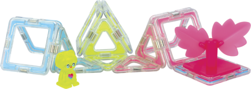 6x Glow trojúhelník 7x Glow čtverec 1x Glow čtverec se sedačkou (pro figurku) 1x Transparentní figurka 2x Glow nemagnetický stromeček 1x Glow nemagnetický světlomet 2x Transparentní nemagnetická plocha