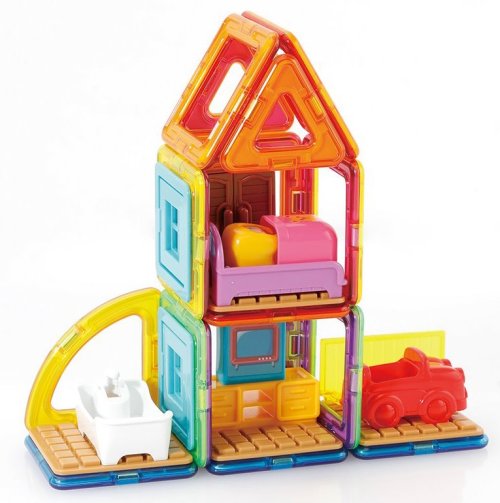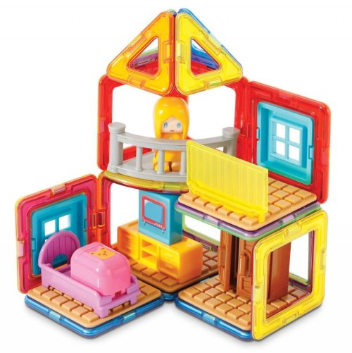 Seznamte se s Magdou a prohlédněte si její domeček. Kreativní magnetická stavebnice umožňuje sestavovat velké množství trojrozměrných objektů, pomocí dvourozměrných plastových mnohoúhelníků. Magformers procvičuje jemnou motoriku, podněcuje tvořivost, učí děti barvy a základní geometrické tvary. Rozměry dílků a vhodně volené tvary zajišťují maximální možnou bezpečnost hračky . Materiál, z kterého je stavebnice vyrobena splňuje nejpřísnější hygienická a zdravotní kritéria. Dílky jsou dostatečně velké, nelze je spolknout a jsou prakticky nerozbitné Balení obsahuje: