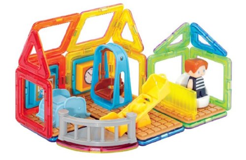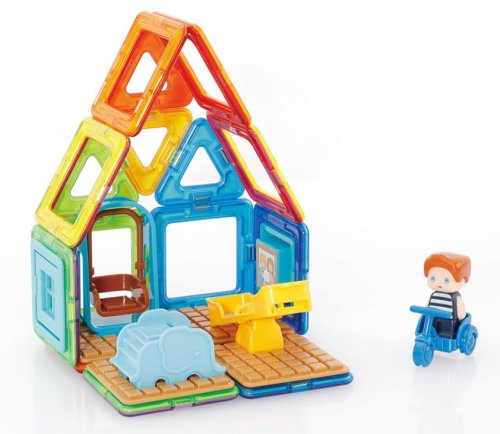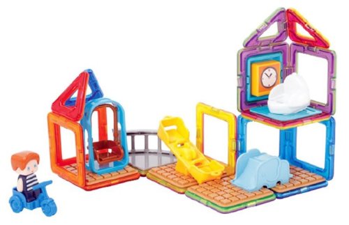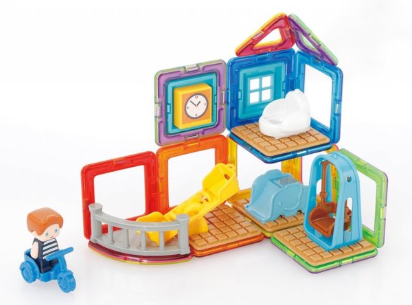 Užijte si zábavu s Maxem a jeho hřištěm. Kreativní magnetická stavebnice umožňuje sestavovat velké množství trojrozměrných objektů, pomocí dvourozměrných plastových mnohoúhelníků. Magformers procvičuje jemnou motoriku, podněcuje tvořivost, učí děti barvy a základní geometrické tvary. Rozměry dílků a vhodně volené tvary zajišťují maximální možnou bezpečnost hračky . Materiál, z kterého je stavebnice vyrobena splňuje nejpřísnější hygienická a zdravotní kritéria. Dílky jsou dostatečně velké, nelze je spolknout a jsou prakticky nerozbitné Balení obsahuje: