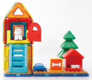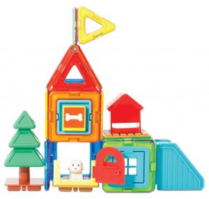 Seznamte se s pejskem Milo a jeho královstvím. Kreativní magnetická stavebnice umožňuje sestavovat velké množství trojrozměrných objektů, pomocí dvourozměrných plastových mnohoúhelníků. Magformers procvičuje jemnou motoriku, podněcuje tvořivost, učí děti barvy a základní geometrické tvary. Rozměry dílků a vhodně volené tvary zajišťují maximální možnou bezpečnost hračky . Materiál, z kterého je stavebnice vyrobena splňuje nejpřísnější hygienická a zdravotní kritéria. Dílky jsou dostatečně velké, nelze je spolknout a jsou prakticky nerozbitné Balení obsahuje: