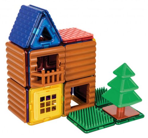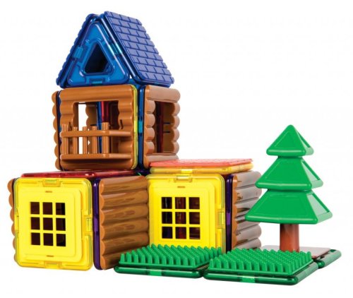 Magformers "Lesní srub" je skvělě navržená sada obsahující 87 dílků. Vynikající dárek pro každého architekta a milovníka přírody, oblíbený zejména u chlapců. Je vybaven speciálními zacvakávacími doplňky pro stavění rozmanitých roubených objektů vč. hospodářských a rekreačních budov. Pro oživení okolí stavby lze navrhnout i vlastní travnatou plochu s jehličnatými stromy. Sada obsahuje 20 čtverců, 8 trojúhelníků, 4 střešních panelů, 1 strom, 8 dřevěných výplní, 2 okna dělená, 1 balkon, 2 travnatých výplní a 2 okna roubené. Počet dílků: 48 Kreativní magnetická stavebnice Magformers umožňuje sestavovat velké množství trojrozměrných objektů, pomocí dvourozměrných plastových mnohoúhelníků. Magformers procvičuje jemnou motoriku, podněcuje tvořivost, učí děti barvy a základní geometrické tvary. Rozměry dílků a vhodně volené tvary zajišťují maximální možnou bezpečnost hračky . Materiál, z kterého je stavebnice vyrobena splňuje nepřísnější hygienická a zdravotní kritéria. Dílky jsou dostatečně velké, nelze je spolknout a jsou prakticky nerozbitné MAGFORMERS lze velmi dobře kombinovat i se známou magnetickou stavebnicí Geomag.