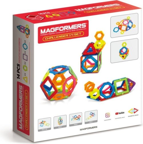 Kreativní magnetická stavebnice Magformers umožňuje sestavovat velké množství trojrozměrných objektů, pomocí dvourozměrných plastových mnohoúhelníků. Magformers procvičuje jemnou motoriku, podněcuje tvořivost, učí děti barvy a základní geometrické tvary. Rozměry dílků a vhodně volené tvary zajišťují maximální možnou bezpečnost hračky . Materiál, z kterého je stavebnice vyrobena splňuje nepřísnější hygienická a zdravotní kritéria. Dílky jsou dostatečně velké, nelze je spolknout a jsou prakticky nerozbitné MAGFORMERS lze velmi dobře kombinovat i se známou magnetickou stavebnicí Geomag. ilustrační video magnetické stavebnice Magformers