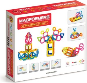 Kreativní magnetická stavebnice Magformers umožňuje sestavovat velké množství trojrozměrných objektů, pomocí dvourozměrných plastových mnohoúhelníků. Magformers procvičuje jemnou motoriku, podněcuje tvořivost, učí děti barvy a základní geometrické tvary. Rozměry dílků a vhodně volené tvary zajišťují maximální možnou bezpečnost hračky . Materiál, z kterého je stavebnice vyrobena splňuje nepřísnější hygienická a zdravotní kritéria. Dílky jsou dostatečně velké, nelze je spolknout a jsou prakticky nerozbitné MAGFORMERS lze velmi dobře kombinovat i se známou magnetickou stavebnicí Geomag. ilustrační video magnetické stavebnice Magformers