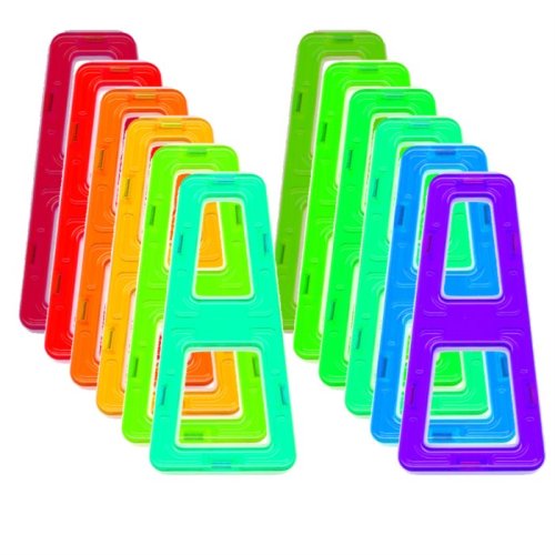 Sada 12 kusů Super lichoběžníků s 6 magnety. Délka 13 cm. Šířka - delší strana - 5,5 cm a kratší strana 3,5 cm. Barvy dílků dodáváme dle skladových zásob. Počet dílků: 12 Kreativní magnetická stavebnice Magformers umožňuje sestavovat velké množství trojrozměrných objektů, pomocí dvourozměrných plastových mnohoúhelníků. Magformers procvičuje jemnou motoriku, podněcuje tvořivost, učí děti barvy a základní geometrické tvary. Rozměry dílků a vhodně volené tvary zajišťují maximální možnou bezpečnost hračky . Materiál, z kterého je stavebnice vyrobena splňuje nepřísnější hygienická a zdravotní kritéria. Dílky jsou dostatečně velké, nelze je spolknout a jsou prakticky nerozbitné. MAGFORMERS lze velmi dobře kombinovat i se známou magnetickou stavebnicí Geomag. Ilustrační video magnetické stavebnice Magformers