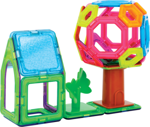 Kreativní magnetická stavebnice Magformers umožňuje sestavovat velké množství trojrozměrných objektů, pomocí dvourozměrných plastových mnohoúhelníků. Magformers procvičuje jemnou motoriku, podněcuje tvořivost, učí děti barvy a základní geometrické tvary. Rozměry dílků a vhodně volené tvary zajišťují maximální možnou bezpečnost hračky . Materiál, z kterého je stavebnice vyrobena splňuje nepřísnější hygienická a zdravotní kritéria. Dílky jsou dostatečně velké, nelze je spolknout a jsou prakticky nerozbitné. MAGFORMERS lze velmi dobře kombinovat i se známou magnetickou stavebnicí Geomag.