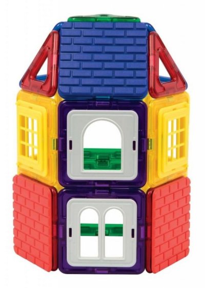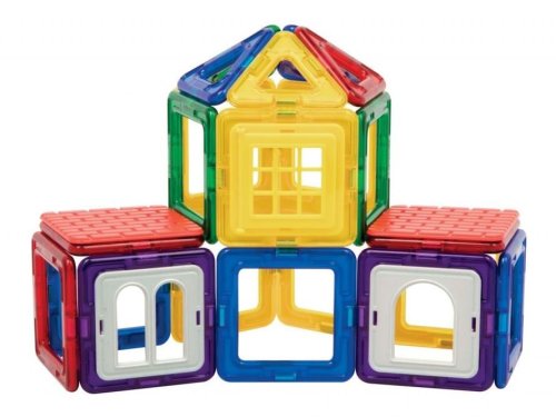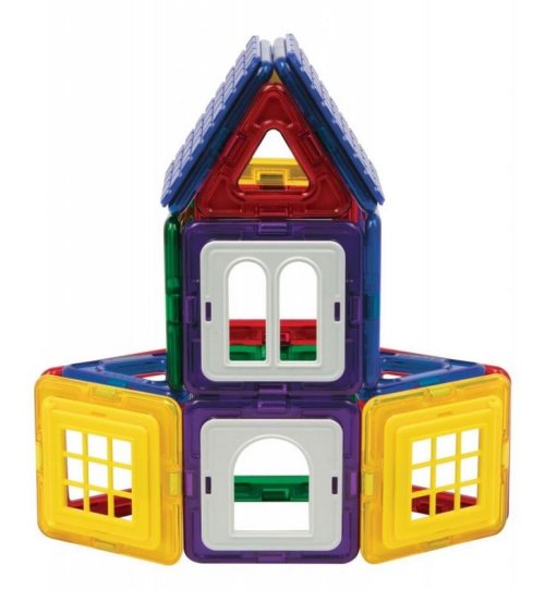 Stavebnice Magformers Wow House 28 dílků. Hlavní výhodou této stavebnice jsou oboustranné výukové plakáty z velmi odolného křídového kartonu se zaoblenými rohy, které obsahují předlohy různých staveb, plošných sítí, základních těles s návodem na jejich stavění a obrázkových úloh na učení barev a tvarů. Ideální pro děti od 3 do 6 let na seznámení s didaktickými vlastnostmi stavebnic Magformers a jako ochutnávka toho, co se dá i z relativně malého počtu dílků vytvořit. Počet dílků: 28 6 trojúhelníků 12 čtverců 2 obdélníky 8 doplňků na stavbu domů Kreativní magnetická stavebnice Magformers umožňuje sestavovat velké množství trojrozměrných objektů, pomocí dvourozměrných plastových mnohoúhelníků. Magformers procvičuje jemnou motoriku, podněcuje tvořivost, učí děti barvy a základní geometrické tvary. Rozměry dílků a vhodně volené tvary zajišťují maximální možnou bezpečnost hračky . Materiál, z kterého je stavebnice vyrobena splňuje nepřísnější hygienická a zdravotní kritéria. Dílky jsou dostatečně velké, nelze je spolknout a jsou prakticky nerozbitné. Plakáty s plošnými sítěmi a návody ke stavbám jsou skutečně veliké, takže jsou vyobrazené dílky v životní velikosti a děti tak mohou začít stavět metodou velmi názorného přikládání skutečných dílků přímo na výukové archy! MAGFORMERS lze velmi dobře kombinovat i se známou magnetickou stavebnicí Geomag. ilustrační video magnetické stavebnice Magformers
