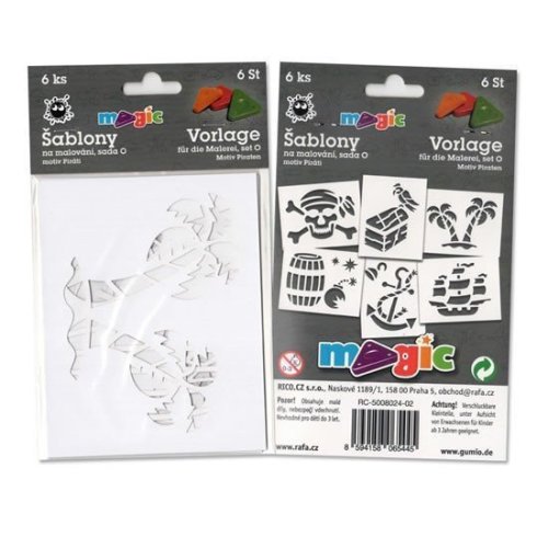 Sada 6ks papírové šablony na malování. Materiál bílý karton 220g. Doporučujeme pro malování s magickými voskovkami (technika frotáž), vhodné i pro tupování s temperami, pro malování s foukacími fixami nebo techniku malování plastelínou. Rozměry 11x14cm.