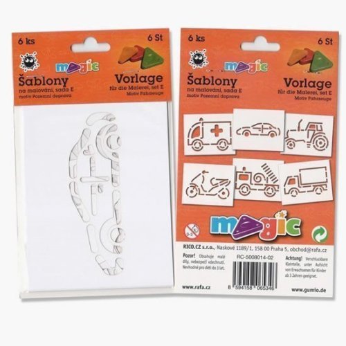Sada 6ks papírové šablony na malování. Materiál bílý karton 220g. Doporučujeme pro malování s magickými voskovkami (technika frotáž), vhodné i pro tupování s temperami, pro malování s foukacími fixami nebo techniku malování plastelínou. Rozměry 11x14cm.