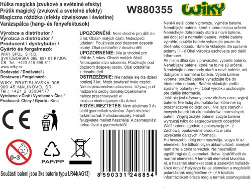 Magická hůlka bude skvělým doplňkem na karneval nebo haloweenskou párty! Při zmáčknutí tlačítka na rukojeti začne hůlka vydávat kouzelné melodie a rozsvítí se!