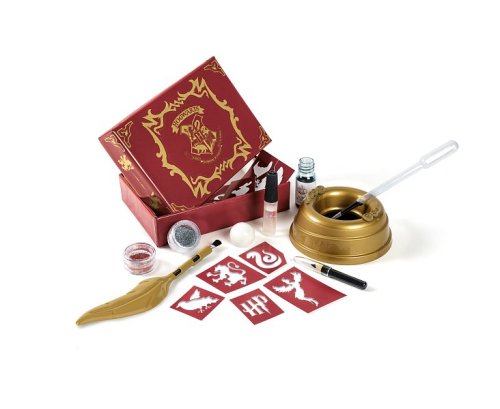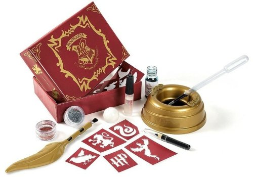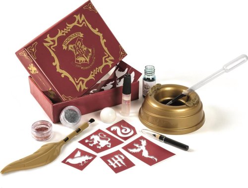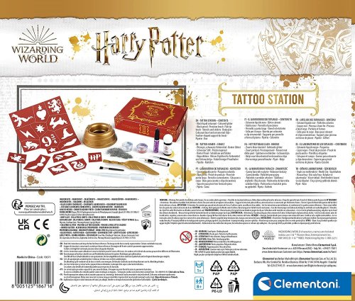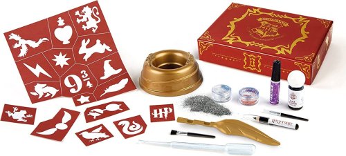 Tato sada obsahuje vše potřebné k vytvoření fantastických tetování v Harryho Potter stylu. V balení najdete třpytky, šablony, štětec a tužky pro dokonalou imitaci kouzelných tetování z oblíbeného světa Harryho Pottera. Použijte speciální aplikátor ve tvaru kouzelného pírka pro snadné přichycení třpytivého prachu na kůži a vytvoření vlastního personalizovaného tetování. Součástí sady je praktický stůl pro uspořádání všech potřebných součástí. Zábavná a kreativní sada pro všechny fanoušky Harryho Pottera, kteří chtějí vytvořit kouzelné tetování.