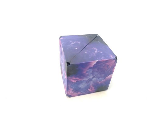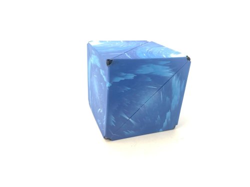 Povrch kostky je opatřen zajímavými barevnými vzory připomínajícími abstraktní přírodní motivy, jako jsou modré a tyrkysové odstíny evokující vodní hladinu, červené a růžové tóny připomínající ohnivé pohyby, nebo fialovo-růžové obláčkové motivy, které přidávají kostce estetickou hodnotu. Každá strana kostky je tvořena menšími trojúhelníkovými segmenty, mezi nimiž jsou umístěny magnety, což umožňuje jejich snadné posouvání a změnu konfigurace.