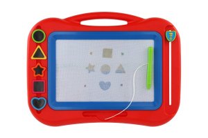 Magnetická mazací tabulka v krásném barevném provedení je kreativní pomůcka pro kreslení. A pokud se dětem obrázek nebude líbit, v mžiku ho smažou pomocí mazací lišty. Děti si zábavnou formou zlepšují motoriku a rozvíjí si kreativitu. Součástí balení je tužka na tabulku a pět razítek. Vhodné od 3 let.