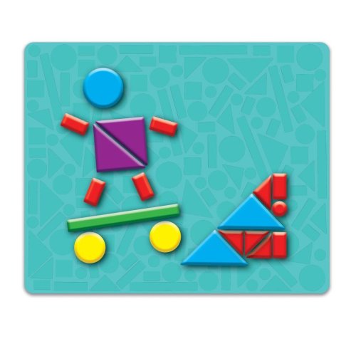 Zábavná aktivita s více než čtyřiceti magnetickými dílky různých tvarů a barev. Sada obsahuje oboustrannou obrázkovou desku, na které mohou děti vytvářet různé vzorce a obrázky. Součástí balení je obrázkový návod. Obsah: Více než 40 různých tvarů s magnetickými vložkami, oboustranná obrázková deska a brožurka s návrhy obrázků Rozměry obrázkové desky: 25 x 21 cm