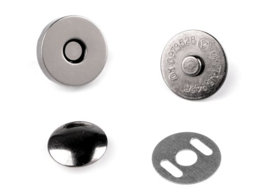 Magnetické zapínání s nýtkem se používá na uzavírání tašek nebo na klop kabelek či batohů. [K aplikaci slouží piston k nýtování a lis 070241 nebo 790770.] Jedna sada se skládá ze 4 kusů. Průměr nýtku je 12 mm, jeho délka je 9 mm.
