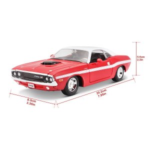Special Edition 1:24 1970 Dodge Challenger R/T Coupe, červený. Modely Special Edition jsou sbírkou krásného designu s vysokým důrazem na přesnost detailů. Modely jsou vyrobeny z litého kovu s plastovými detaily. Modely v měřítku 1:24 patří mezi nejoblíbenější. Většina z modelů Special Edition má otevírací dveře, kufr nebo kapotu. Baleno v krabičce. Nevhodné pro děti do 3 let. Rozměry balení: 10,5 x 23,3 x 11,4 cm. Věk 3+