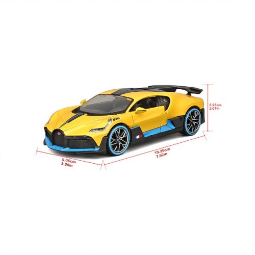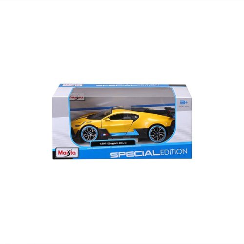 Special Edition 1:24 Bugatti Divo, žluté. Modely Special Edition jsou sbírkou krásného designu s vysokým důrazem na přesnost detailů. Modely jsou vyrobeny z litého kovu s plastovými detaily. Modely v měřítku 1:24 patří mezi nejoblíbenější. Většina z modelů Special Edition má otevírací dveře, kufr nebo kapotu. Baleno v krabičce. Nevhodné pro děti do 3 let. Rozměry balení: 10,5 x 22,9 x 11,4 cm. Věk 3+