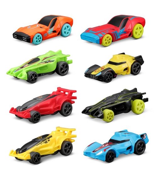 Náhradní autíčko k produktu 12556 Cyber Racers, Play set - Vertikální dráha na dveře. Autíčko má oranžovou barvu s modrými koly. Rozměr blistru: 11,4x11,4x4,5cm. Věk:3+
