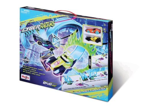 Maisto Cyber Racers Dual Race Chalange– závodní dráha s nespočtem smyček a zatáček zaručuje dokonalou zábavu. Pestrobarevná závodní dráha nabízí dvě různé varianty trasy plné smyček, zatáček a překážek. Součástí sady s dráhou jsou dvě natahovací autíčka, obruč, kterou autíčko proletí a překážky v cílové rovince. Vhodné pro děti od 3 let. Rozměry balení: 35,5 x 45,5 x 7,6 cm.