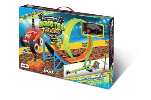 Maisto Cyber Racers Micro Monster Truck Show – závodní dráha s natahovacím autíčkem monster truck zaručuje dokonalou zábavu. Pestrobarevná závodní dráha se smyčkou a rampou, která odpálí rozjeté autíčko do vzduchu. Součástí sady je také značka s měřítkem. Díky měřítku můžou děti závodit komu autíčko vyletí výše. Vhodné pro děti od 3 let. Rozměry balení: 31,75 x 44,51 x 6,25 cm