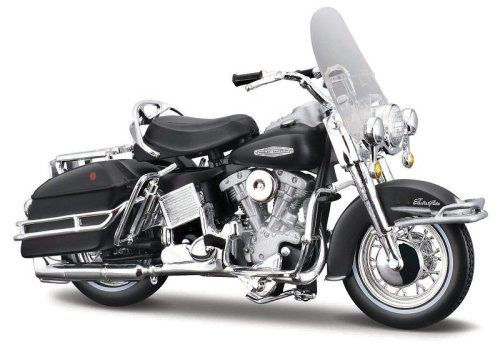 1966 FLH Electra Glide®. Motocykl Harley-Davidson FLH Electra-Glide z roku 1966 s hladším chodem a výkonnějším motorem Shovelhead. Vyrobeno z kvalitních dílů s detailní povrchovou úpravou. Otočná řídítka a odpružené zadní kolo. Rozměry: 17,8x10,2x7cm. Věk: 3+