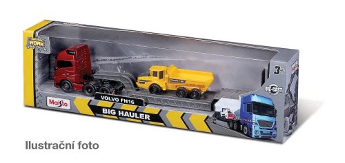 Sada velkého tahače. Velký a silný tahač, který veze mini verzi pracovního stroje. Kovové autícko s plastovými detaily a opravdovými gumovými pneumatikami. Balení: 27,5x8x4,8cm. Věk: 8+