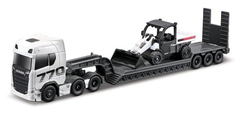 Scania 770S with Toolcat 5600 + Bucket. Velký a silný tahač, který veze mini verzi pracovního stroje. Kovové autícko s plastovými detaily a opravdovými gumovými pneumatikami.Barevné provedení výrobku a design se může lišit. Balení: 27,5x8x4,8cm. Věk: 8+