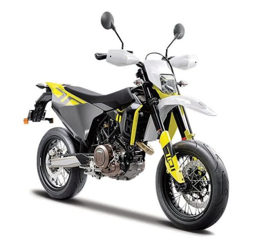 2 Wheelers 1:18 2023 Husqvarna 701 Supermoto. Model ze série 2 Wheelers 1:18 má autentické detailní provedení jednotlivých částí a kvalitní barevné provedení. Kovový model s plastovými doplňky. Model má pohyblivý boční stojan a zadní odpružení kola. Baleno v krabičce. Nevhodné pro děti do 3 let. Rozměry balení: 10,4 x 15,7 x 6,8 cm. Věk: 3 +