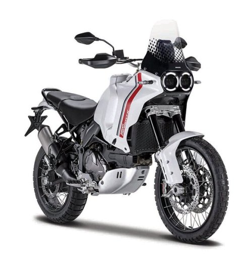 Ducati DesertX. Kovové modely motocyklů v modelovém měřítku 1:18. Motocykly mají otáčivá řidítka a odpruženou zadní nápravu. Jsou usazeny na černém plastovém podstavci. Rozměry balení: 16x10,5x7cm. Věk: 3+