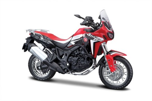 Honda Africa Twin DCT. Kovové modely motocyklů v modelovém měřítku 1:18. Motocykly mají otáčivá řidítka a odpruženou zadní nápravu. Jsou usazeny na černém plastovém podstavci. Rozměry balení: 16x10,5x7cm. Věk: 3+