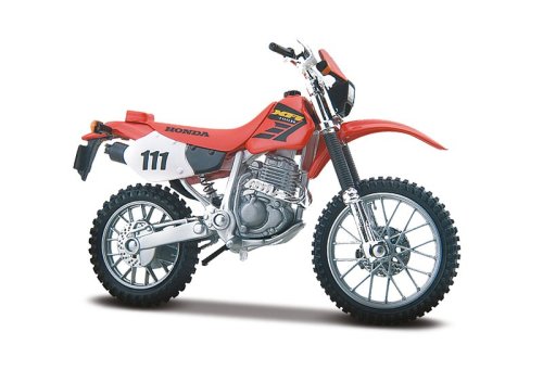 Honda XR400R. Kovové modely motocyklů v modelovém měřítku 1:18. Motocykly mají otáčivá řidítka a odpruženou zadní nápravu. Jsou usazeny na černém plastovém podstavci. Rozměry balení: 16x10,5x7cm. Věk: 3+