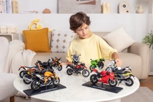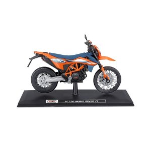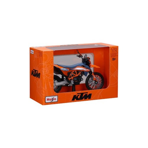 Special Edition Motorcycles 1:12 2023 KTM 690 SMC R. Modely motocyklů Special Edition jsou balené včetně stojánku v krabičce v barvách, které jsou specifické pro výrobce. Kovový model s plastovými doplňky. Model má odpruženou zadní nápravu, pohyblivý boční stojan a volně otáčející kola. Nevhodné pro děti do 3 let. Rozměry balení: 13,97 x 22,3 x 8,89 cm. Věk: 3+