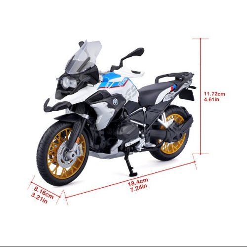 Special Edition Motorcycles 1:12 BMW R1250 GS. Modely motocyklů Special Edition jsou balené včetně stojánku v krabičce v barvách, které jsou specifické pro výrobce. Kovový model s plastovými doplňky. Model má odpruženou zadní nápravu, pohyblivý boční stojan a volně otáčející kola. Nevhodné pro děti do 3 let. Rozměry balení: 13,97 x 22,3 x 8,89 cm. Věk: 3+