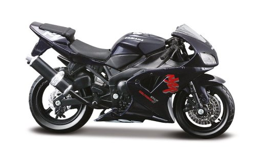 Yamaha YZF-R1. Kovové modely motocyklů v modelovém měřítku 1:18. Motocykly mají otáčivá řidítka a odpruženou zadní nápravu. Jsou usazeny na černém plastovém podstavci. Rozměry balení: 16x10,5x7cm. Věk: 3+