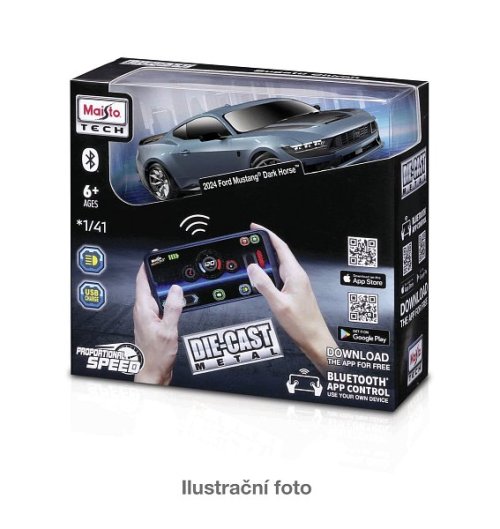 Zažijte budoucnost RC s Maisto mini kovovým RC modelem ovládaným přes Bluetooth. Popusťte uzdu síle a ovládejte tento zázrak v měřítku 1:41 jako opravdový automobilový nadšenec. Vaše oblíbené modely z litého kovu jsou nyní ovládány vaším chytrým telefonem. Síla je ve vašich rukou. 2,4 GHz pro špičkový výkon. Vozidlo využívá lithiovou baterii, která je dobíjecí pomocí nabíjecího kabelu USB C (baterie i kabel jsou součástí balení). Modely mají osvětlení. Na výběr jsou různé modely. Assort je náhodný mix modelů. Výběr nelze ovlivnit. Modely v kolekci: Audi e-tron Sportback, Bugatti Chiron, 2024 Ford Mustang ® Dark Horse ™, FXX-K EVO, Mercedes-Benz G-Class, Volkswagen Van „Samba“. Baleno v krabičce. Rozměry balení: 14 x 15,2 x 6,35 cm. Věk: 6+
