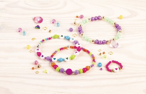 Korálkové studio obsahuje 2600 různých korálků, 8 voskovaných šňůr v různých barvách dlouhých 8 m, průsvitnou elastickou šňůru dlouhou 4 m. Vše potřebné k výrobě náhrdelníků, náramků, prstenů, čelenek a mnoho dalšího. Doporučený věk od 8 let.