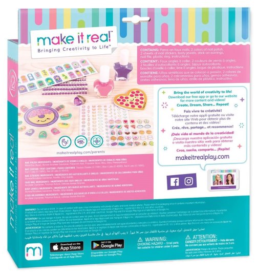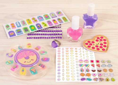 V balení jsou dva laky na nehty, pilník na nehty, dva archy se samolepkami, arch s nalepovacími náušnicemi, dekorační kamínky, prstýnek.