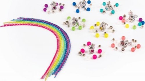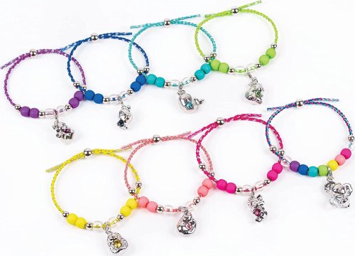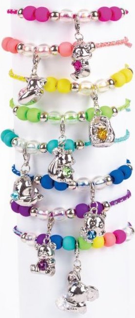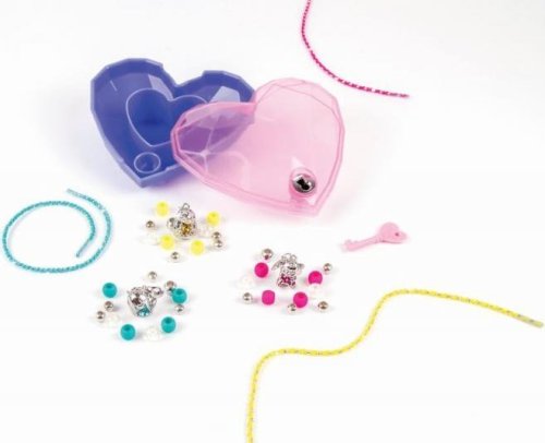 sada obsahuje: 3 náramky s přívěsky a krystalem SWAROVSKI, krabičku ve tvaru srdce, klíček, korálky, barevné šňůry a instrukce