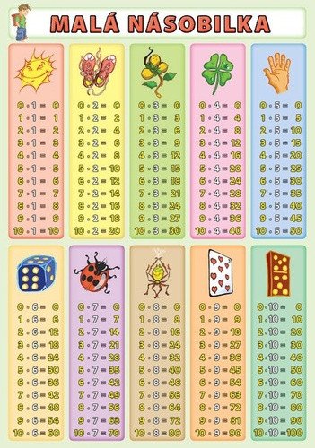 Přehledně zpracovaná malá a velká násobilka s vtipnými ilustracemi pro malé i velké počtáře. Přední strana obsahuje násobení do 100, zadní strana násobení do 200. Ilustrace od Petra Kopla.