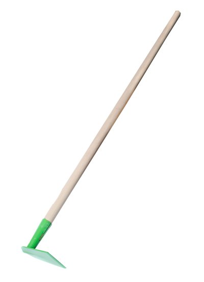 Velmi kvalitní a plně funkční dětská motyčka - plochá v pestré barvě s dřevěnou násadou.
