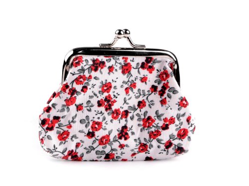 Romantická peněženka s motivem drobných květů je malá, vhodná na drobné mince a klíče. Můžete do ní ukrýt také bankovky nebo dekorativní kosmetiku. Je lehká, textilní, nahoře zakončená kovovým rozevíracím rámečkem se zapínáním. Náš tip: peněženku můžete využít i jako malé šitíčko. Můžete si do ní uložit všechny drobné předměty, které potřebujete na cestách.