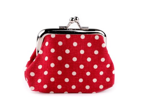 Malá puntíkovaná peněženka je vhodná na drobné mince a klíče. Můžete do ní ukrýt také bankovky nebo dekorativní kosmetiku. Je lehká, textilní, nahoře zakončená kovovým rozevíracím rámečkem se zapínáním. Náš tip: peněženku můžete využít i jako malé šitíčko. Můžete si do ní uložit všechny drobné předměty, které potřebujete na cestách.