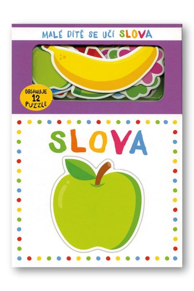 Tato kazeta obsahuje knížku a 12 různých puzzle, které přesně zapadnou na vyznačená místa. Puzzle i knížka jsou ideální pomůckou pro výuku řeči a motoriky. Dokážeš všechny dílky správně pojmenovat a uložit je, kam patří? Vesele ilustrovaná knížka nejmenší děti seznámí jak se světem základních slov, tak i s různými barvami, ovocem i zvířátky. Kromě puzzle, díky kterým děti budou rozvíjet a trénovat jemnou motoriku, na malé zvědavce čekají i otázky a úkoly, které jim pomohou si nové znalosti a již nabyté vědomosti procvičit a lépe si je tak osvojit. S knížkou i puzzle se vaše děti rozhodně nudit nebudou a stráví s nimi celé hodiny hraní a učení.