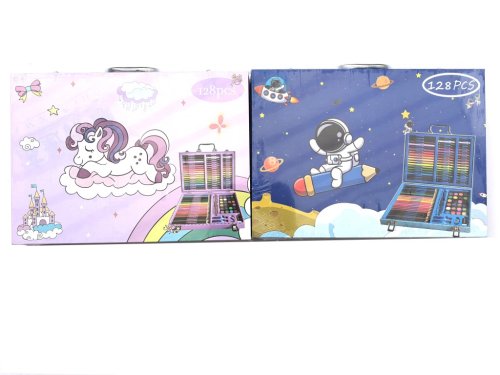 Malířský kufřík je komplexní výtvarný set určený pro malé kreativce i začínající umělce, který nabízí vše potřebné pro malování, kreslení a další tvořivou činnost. Tento set je přehledně uspořádaný v praktickém kufříku, který je snadno přenosný a vhodný jak pro domácí použití, tak i do školy či na cesty. Kufřík je k dispozici ve dvou variantách s dětskými motivy – jeden je laděný do pastelových fialových tónů s obrázkem jednorožce na obláčku, druhý tematicky zaměřený na vesmír s astronautem na tužce ve tmavě modrém provedení.