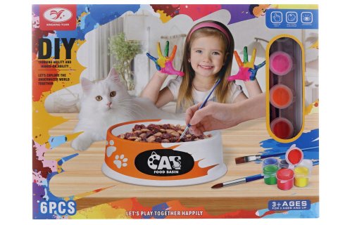 Malovací keramická miska na jídlo pro kočičku. Balení obsahuje misku, 6 barviček, 2 štětečky a paletku. Průměr misky 12 cm. Baleno v krabici. Rozměry balení. 25x19x5 cm. Věk 3+